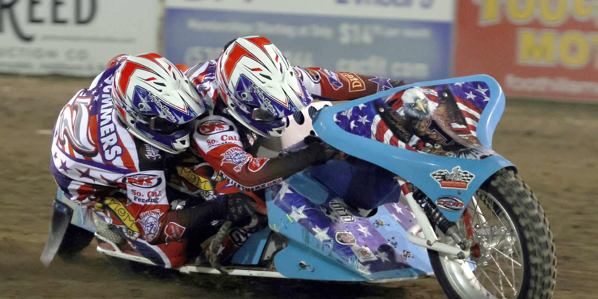 Three other teams with near perfect nights also rolled to the start line along with Jones and Summers, each could easily earn the championship with a great race. Past 2022 AMA National Sidecar Champion Robert Curry and Michael McGovern finished the heats with nine points, Wade Boyd and Eric Lindauer finished with heats with nine points. Filling the last spot was the team of the team of brothers Emil and Ed Ovrid who finished with eight points in the heats and worked their way into final championship race by winning the last chance B main event for the final spot in the big show.