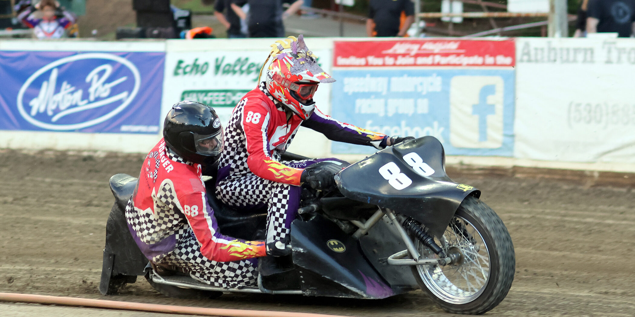 On the third week of the 2024 Fast Friday’s Motorcycle Speedway season fans welcomed the Extreme Sidecars to an already exciting speedway program and were treated to an amazing night of racing. Sponsored by Turttle’s Auto Glass these five teams of racers with ice water running in their veins raced their custom designed 1000cc three-wheeled racing machines on the tricky dirt oval at the Gold Country Fairgrounds. Cheered on and enthusiastically welcomed by their loyal Fast Friday’s fans the Extreme Sidecars put on a great show of gutsy speedway racing.